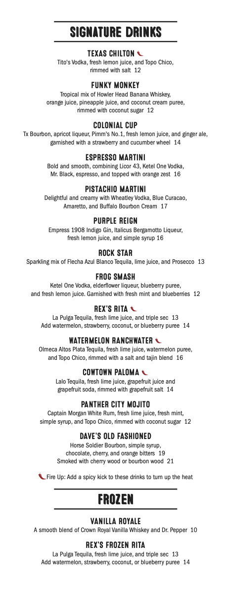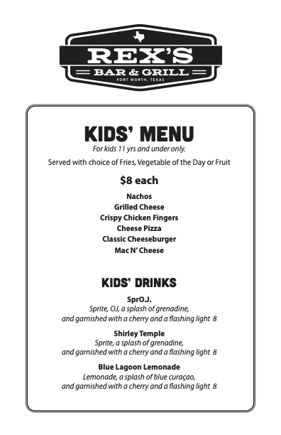 With its varied and exciting menu, Rex's Bar & Grill is sure to please every palate, whether you're stopping by for a quick bite or settling in for a full meal.
